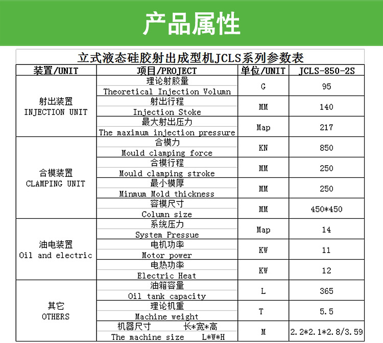 85噸立式液態硅膠射齣成型機的産(chan)品特點: